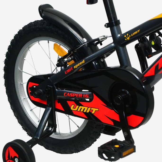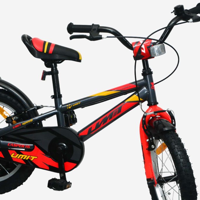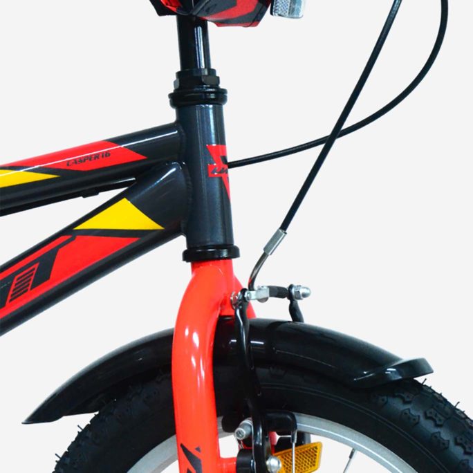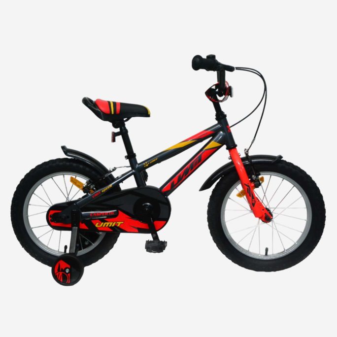 Bicicleta de 16″ con cuadro de acero Hi-Ten resistente, unisex de más de 5 años que midan de 105-115 cm, frenos de V-Break, pedalier de 3 piezas y rodamientos de acero, neumáticos de 16 x 2,125 , llantas de aluminio, con reflectante delantero y trasero para ser visto, estabiciclos para iniciarse en el ciclismo. Fácil montaje, viene el 85% montada, con libro de instrucciones. Peso de la bicicleta 11,5 Kg.