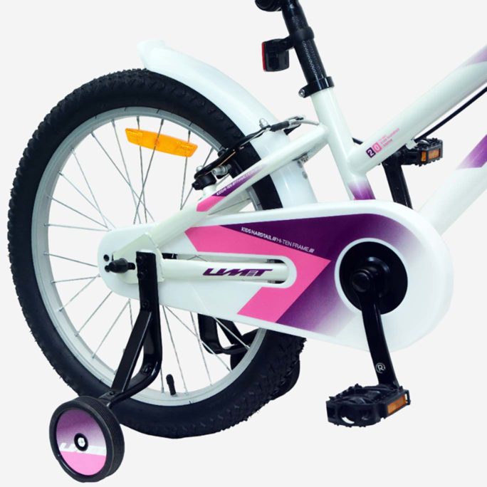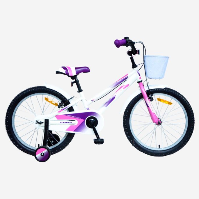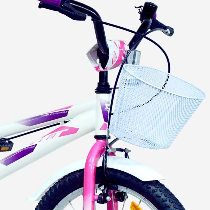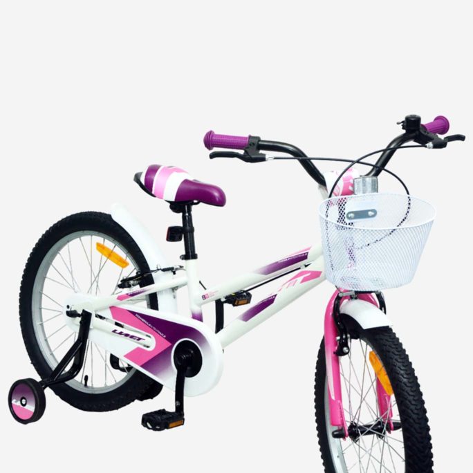 Bicicleta de 20″ para niñas de 6 a 9 años que miden de 120 cm a 135 cm, neumáticos bicolor de 20 x 1’75, llantas de aluminio, cuadro Hi Ten de acero resistente, con estabiciclos, reflectantes para ser visto, portaequipaje, guardabarros y cesta metálica. Fácil montaje, viene con el 85% montada, con libro de instrucciones.