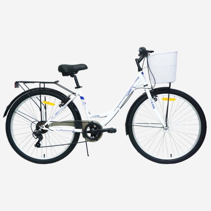 Bicicleta de 26″ cuadro holandés, para niñas a partir de 12 años que miden de 145 cm a 165 cm, con cambio Shimano 7 velocidades, neumáticos de 26 x 2’1, llantas de aluminio, reflectantes para ser visto y pata de cabra. Fácil montaje, viene con el 85% montada, con libro de instrucciones.
