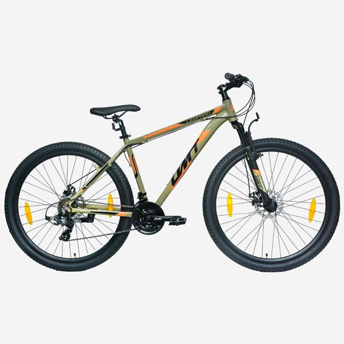 Bicicleta de 29″ cuadro de aluminio, unisex, con cambio Shimano 21 velocidades con manetas de cambio en el puño, frenos disco mecánico, suspensión delantera, neumáticos de 29 x 2’2, llantas de aluminio, reflectantes para ser visto y pata de cabra. Fácil montaje, viene con el 85% montada, con libro de instrucciones.